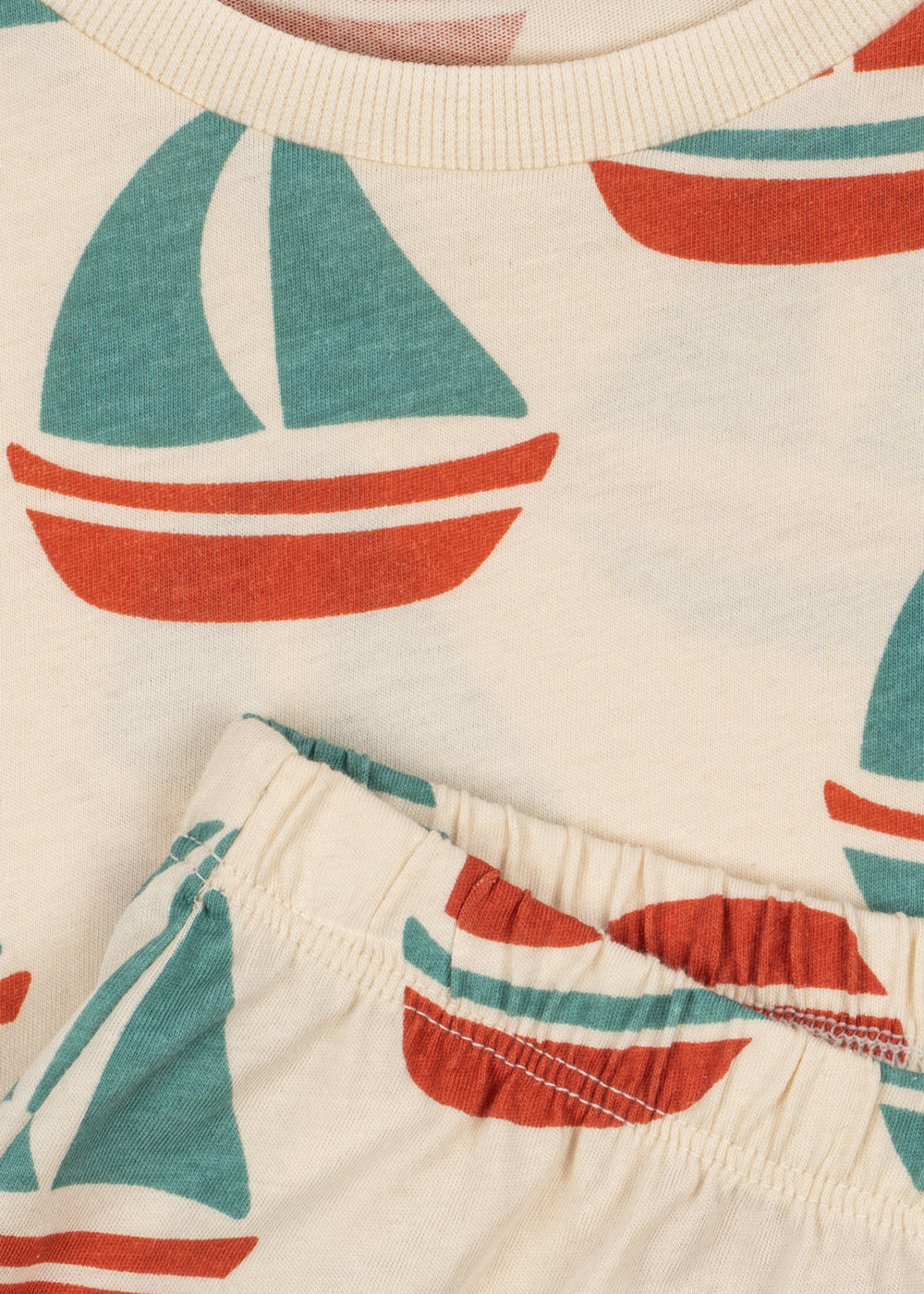 半袖Tシャツと、ウエストゴム仕様の柔らかなショートパンツがセットになっています