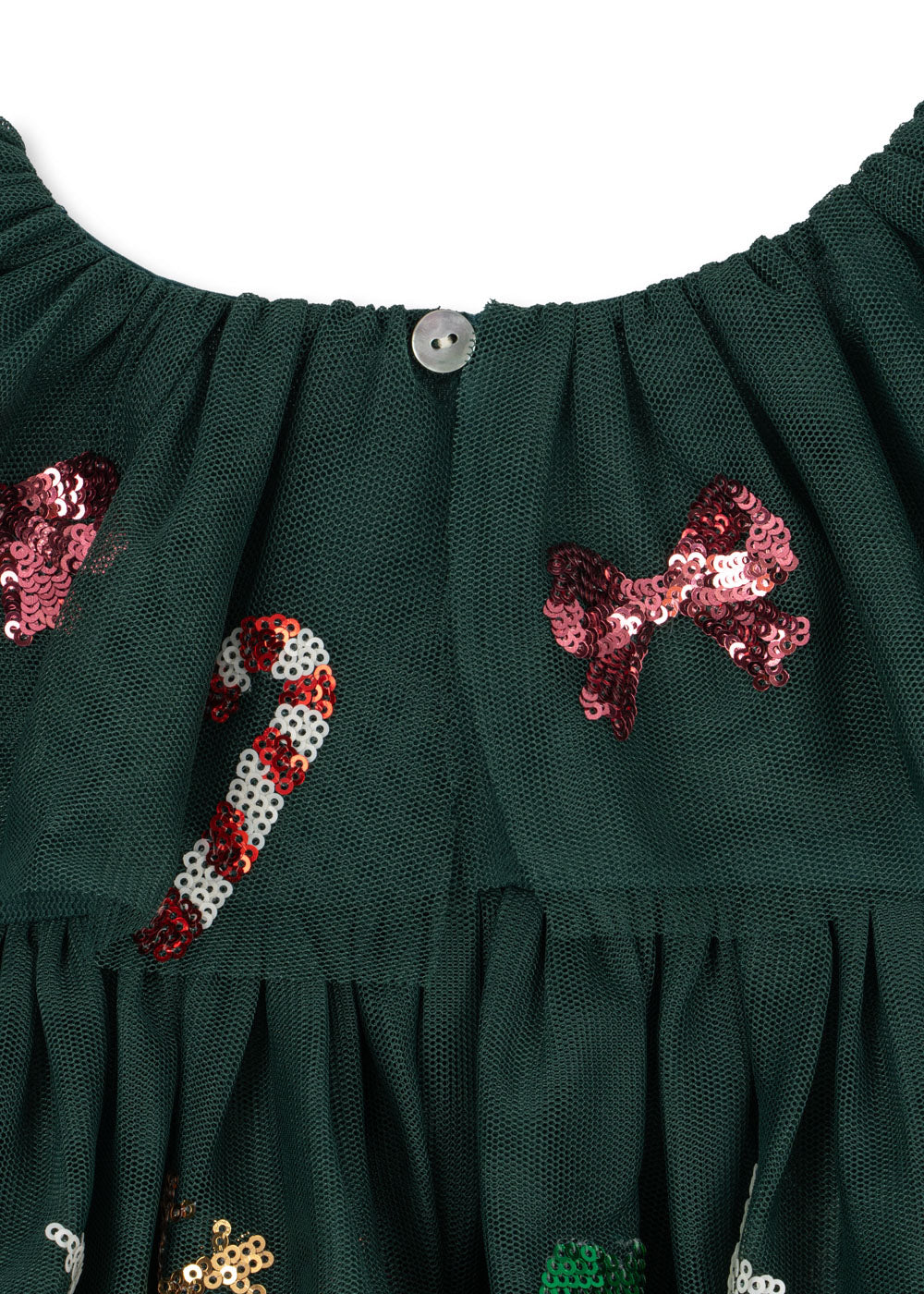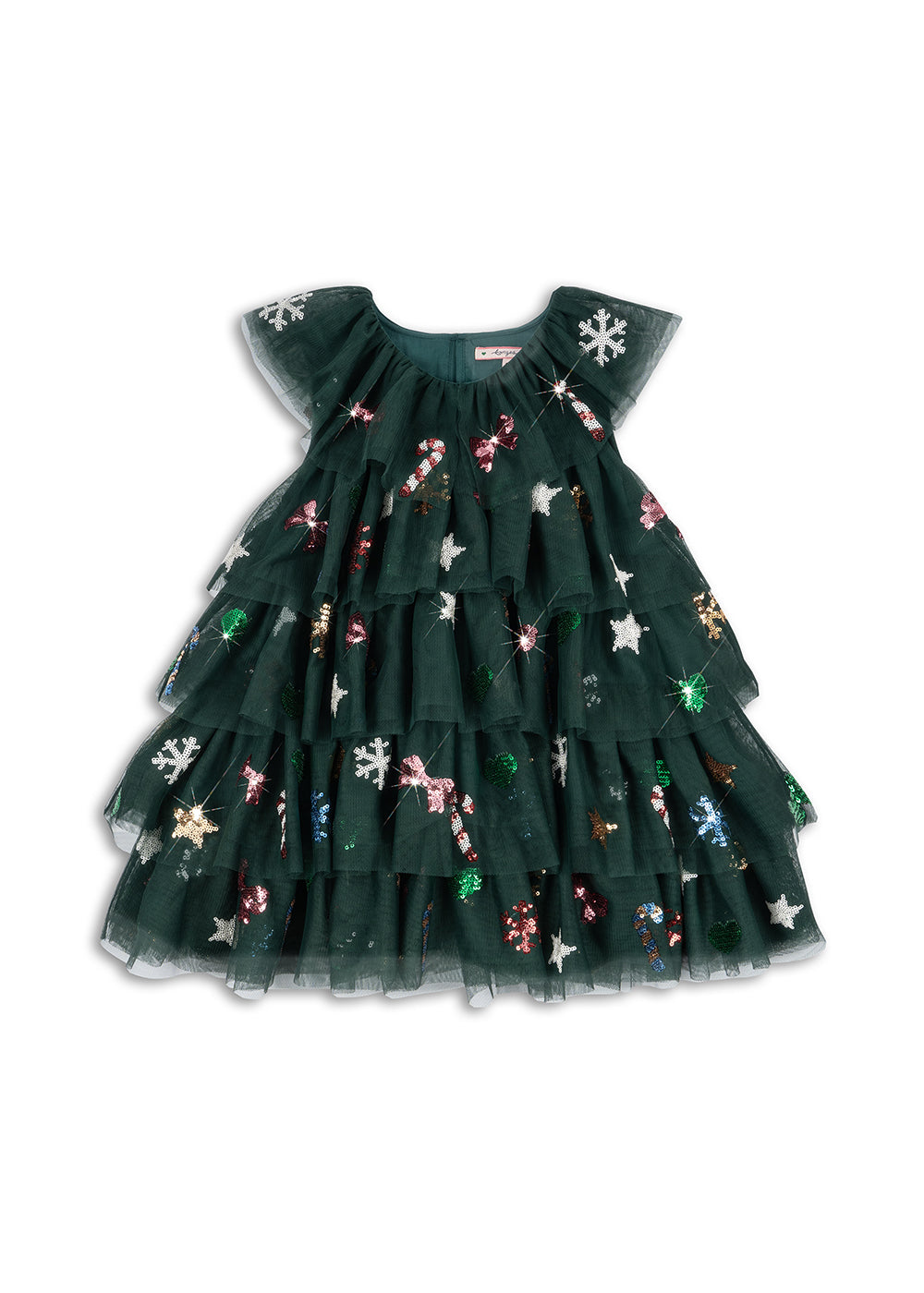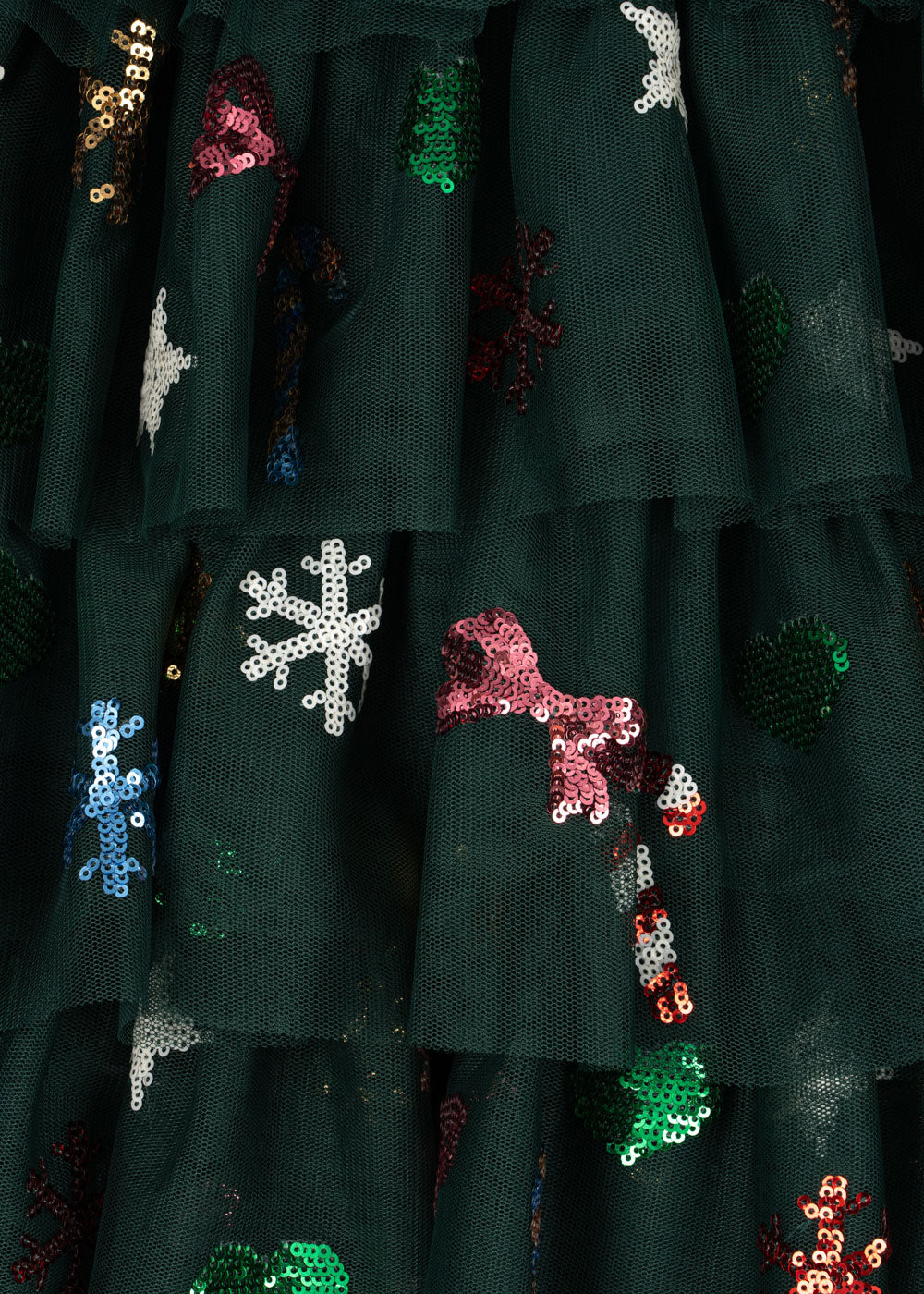 ホリデーモチーフを詰め込んだキラキラスパンコールが華やかなチュールドレス
